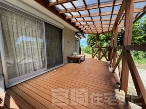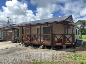 標高約33mの高台に位置する平屋の住宅です。平成26年の建物で中の状態は綺麗です。ソーラパネル付き。ウッドデッキが2ヶ所ついてます。 |